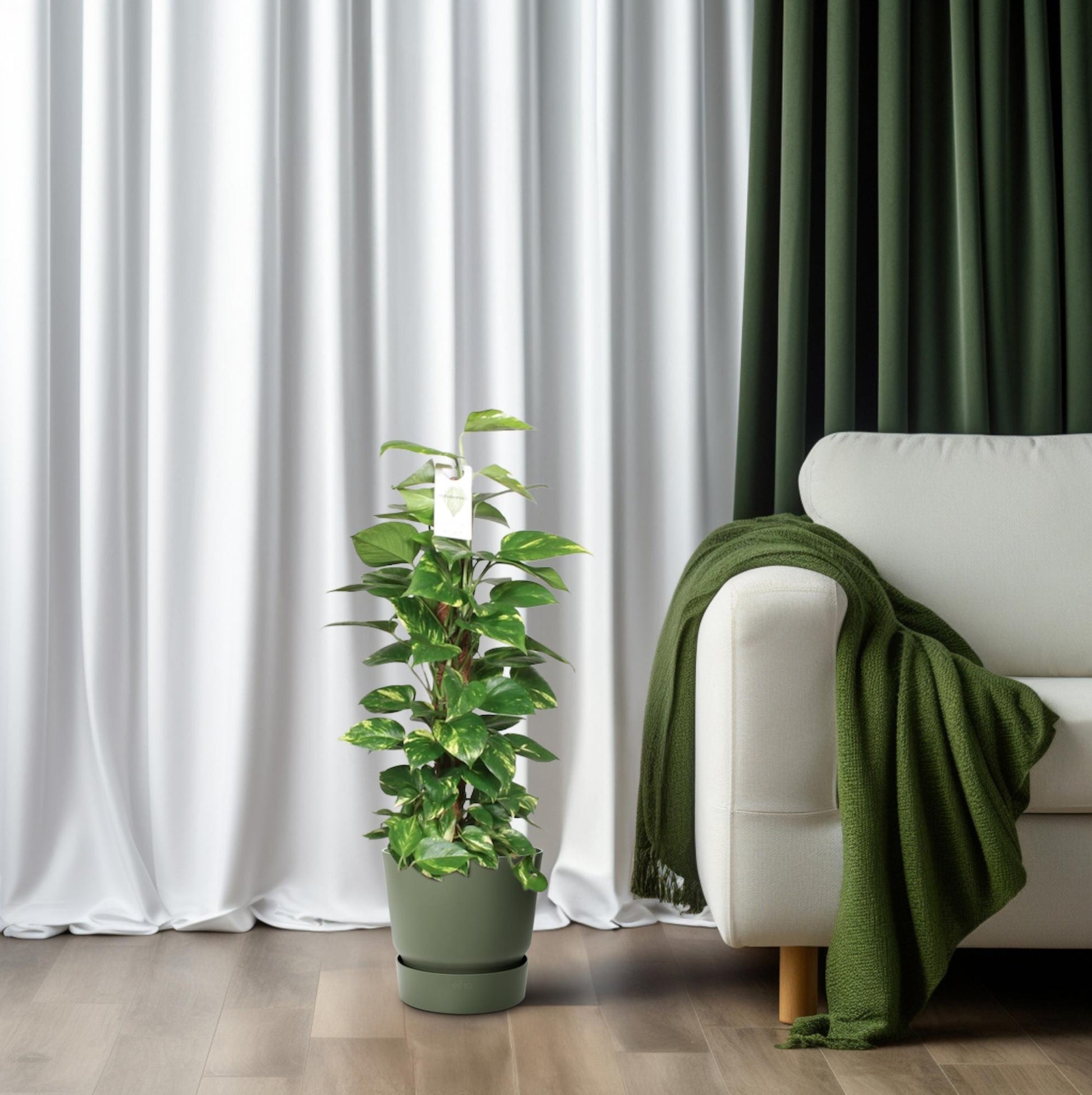 Ik ben zo’n plant die niet moeilijk doet. Ik zie een stam of mosstok en denk meteen: oh leuk, daar klim ik even op. Geef me iets om tegenaan te groeien en mijn bladeren worden steeds groter, soms zelfs met van die mooie diepe inkepingen. Maar als jij liever hebt dat ik sierlijk naar beneden hang, vind ik dat ook goed. Ik ben flexibel.